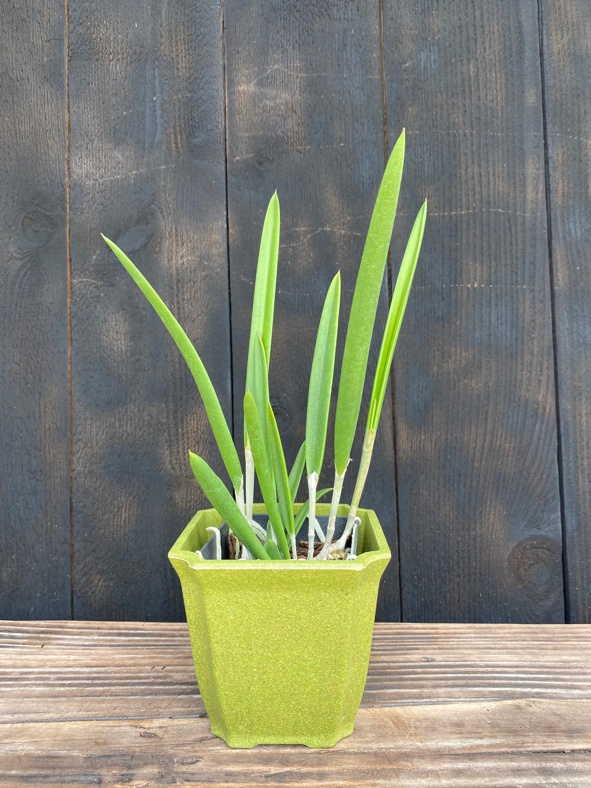Light This is a high-light orchid. Give it as much light as you can without burning the leaves. An east-facing exposure with direct morning sun is great, as is a bright, shaded greenhouse. The pencil-like leaves should be a medium to light green; a reddish or purplish blush indicates high light and is perfectly normal and often encourages more blooms.