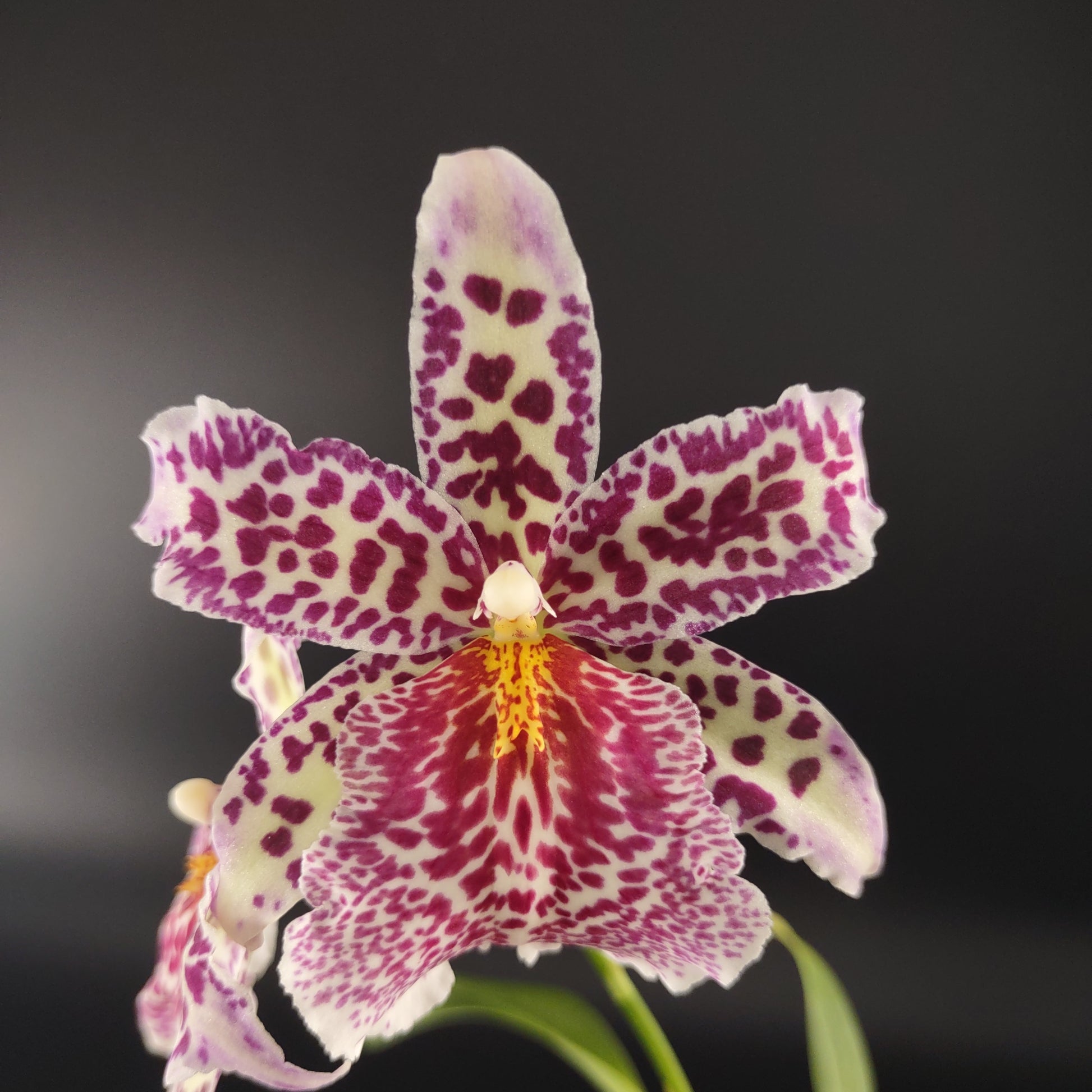 This striking intergeneric hybrid features white flowers speckled with pink polka dots and a delicate sweet scent. A great option for indoor orchid growers, Bllra. Big Shot 'Pink Panther' will thrive in cool to warm conditions and shaded/dappled light. What's not to love! Grown in 4" pots.