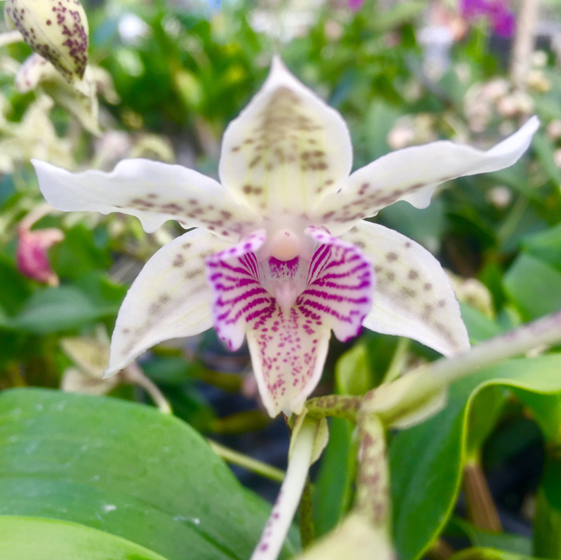 Long lasting, multi spiking & slightly scented. Another great hybrid, Den Micro Chip x atroviolaceum. Double/multi spiking in a 3"-4" pots.