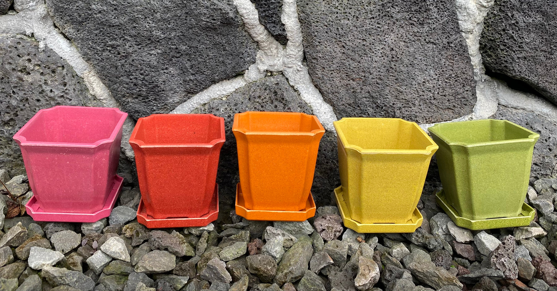 These biodegradable pots are eco friendly and made from mostly rice hulls and natural dyes. Custom made exclusively for Kalapana Tropicals. Slightly larger than our 4" nursery pots, it's an easy way to dress up your favorite plant. They're also great for repotting: when they start to break down it's time to repot!