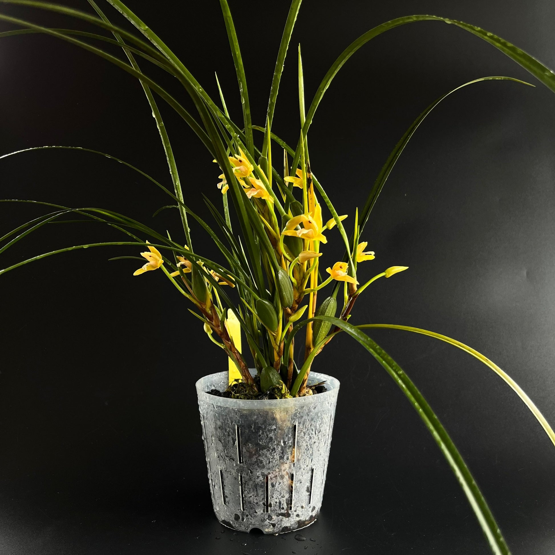 This orchid can be found in the rainforests of Central America, but you'll never find this color! The yellow award winning version of the famous "Coconut Orchid," the blooms of this plant have a strong coconut scent. The tall, grass-like foliage is gorgeous and will add a pleasing splash of green to your home or office.