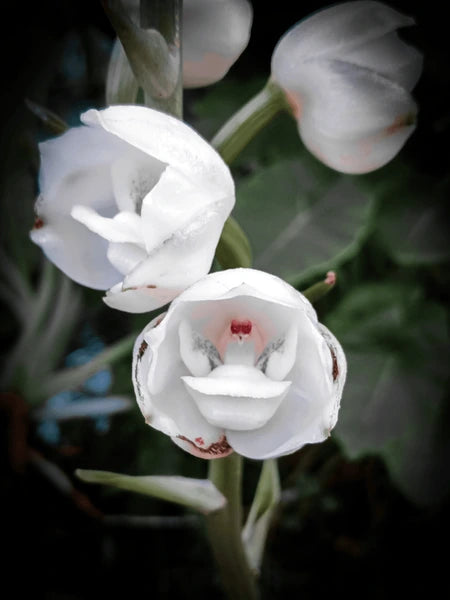The flowers are truly captivating. In the summer, a tall, erect inflorescence emerges from the base of the pseudobulb, capable of reaching an impressive 4 ft. or more in height. This spike carries a succession of 10 to 20 rounded, marble-white, waxy flowers, each about 1.5 to 2 in. across. They don't all open at once, instead providing a show over several weeks. A delightful, spicy, or citrus-like fragrance adds another layer to the experience. Inside that pristine white globe, the column and lip of the orchid fuse to create the iconic dove, which is often delicately speckled with reddish-purple spots.